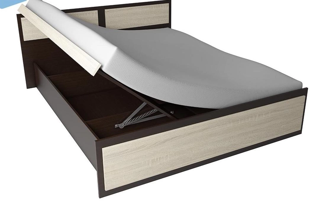 - Кровать включает в себя ортопедическое основание из ламелей, скрепленных между собой, и опирающееся на среднюю царгу;
